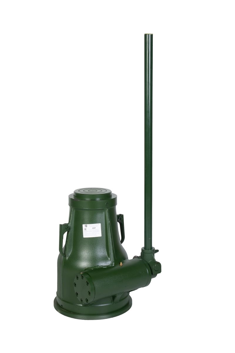 - Экстремальная грузоподъемность 200 тонн. Домкрат поднимает грузы весом до 200 000 кг – абсолютный лидер в своем классе. Это позволяет работать с самыми тяжелыми и габаритными объектами.