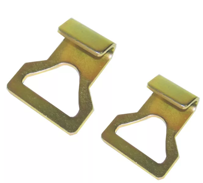 - Крюк плоский — тип крепежного элемента, предназначенного для надёжного соединения тентовых лент с проушинами и другими узлами.