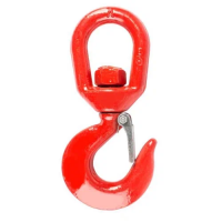 Чрез проушину вращающийся крюк крепится к грузовой цепи или канату, груз фиксируется в зеве, после чего защелка закрывается. Поворотный механизм обеспечивает компенсацию крутящих моментов, возникающих при подъеме, перемещении груза. Это исключает перекручивание строп и канатов, значительно повышая безопасность, продлевая срок службы такелажного оборудования.
